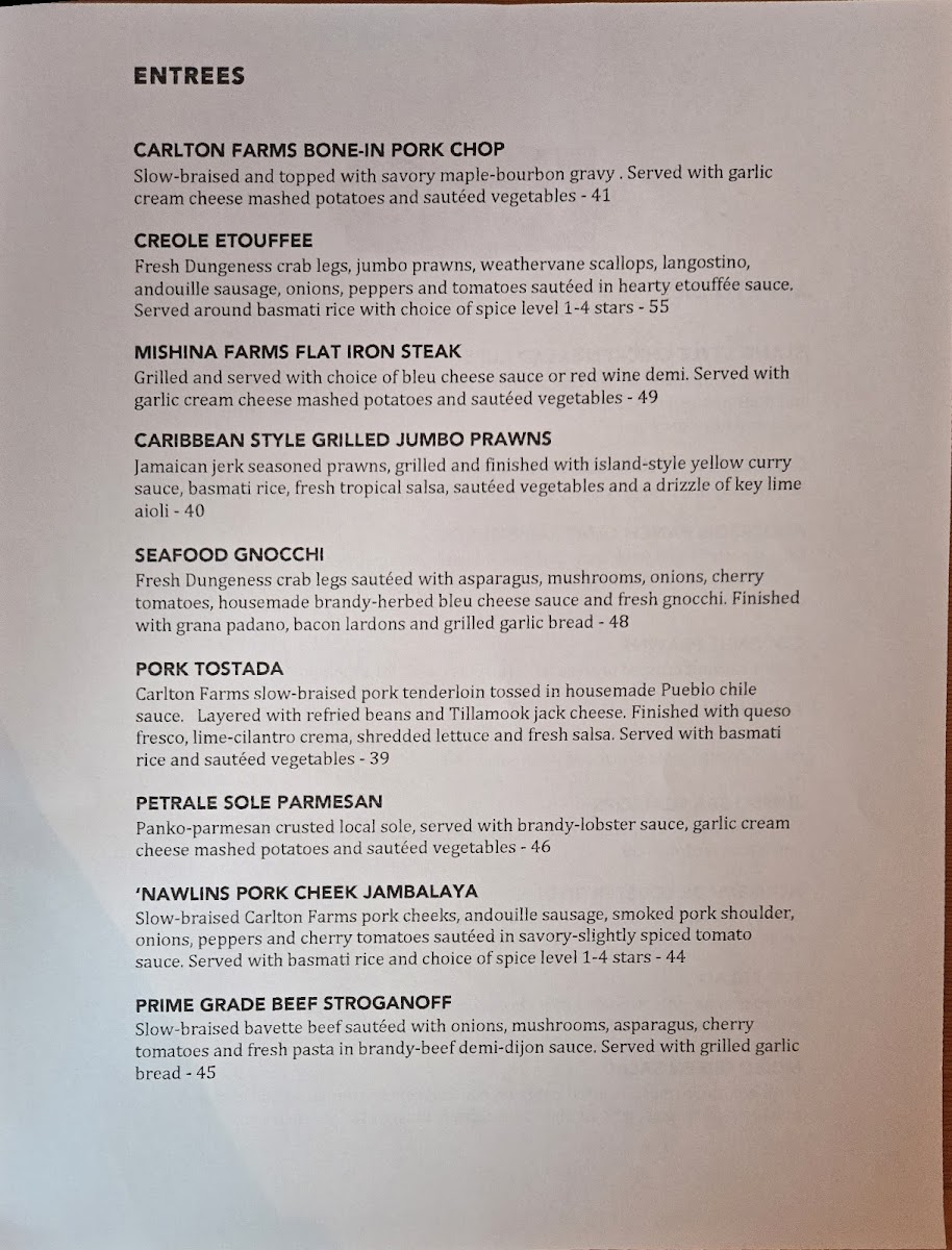 Prawns, potatoes, white wine, heavy cream, fresh herbs and wild salmon or steelhead